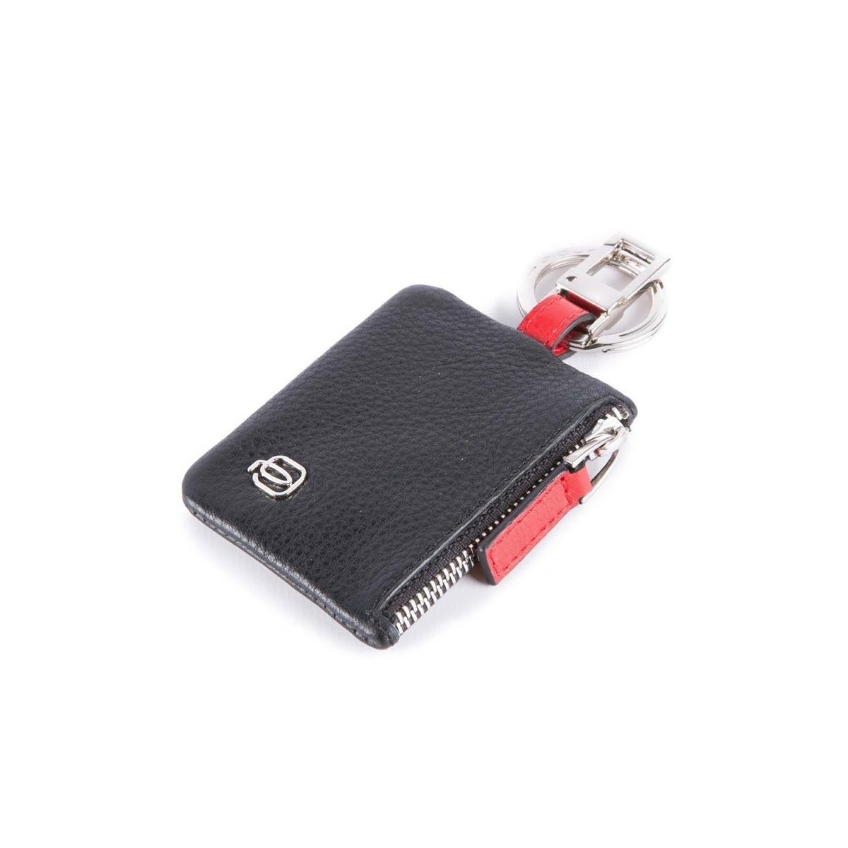 Schlüsselanhänger mit Karabiner und Pochette der Linie Splash aus schwarzem / rotem Leder