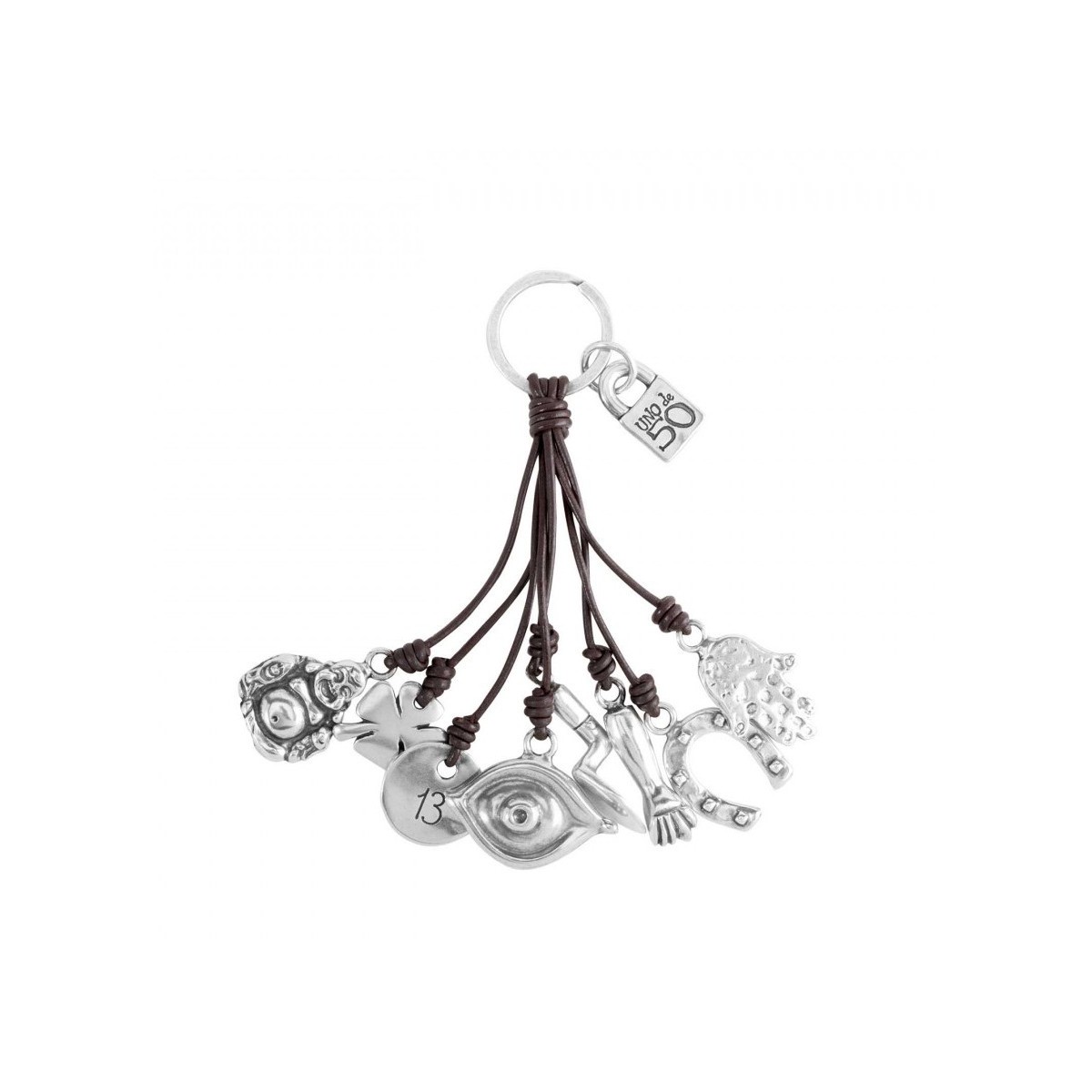 Dunkelbraunes Leder Schlüsselanhänger und Metall Anhänger Geburtsstein Silber vergoldet Symbole