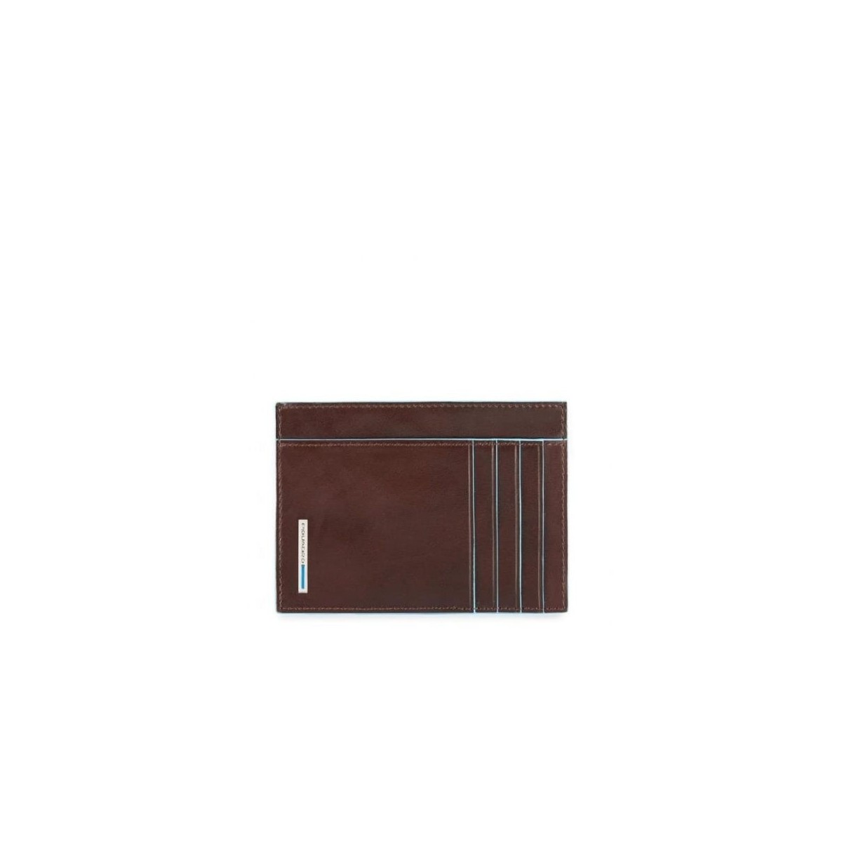 Blaues quadratisches Piquadro-Kartenetui aus Mahagoni