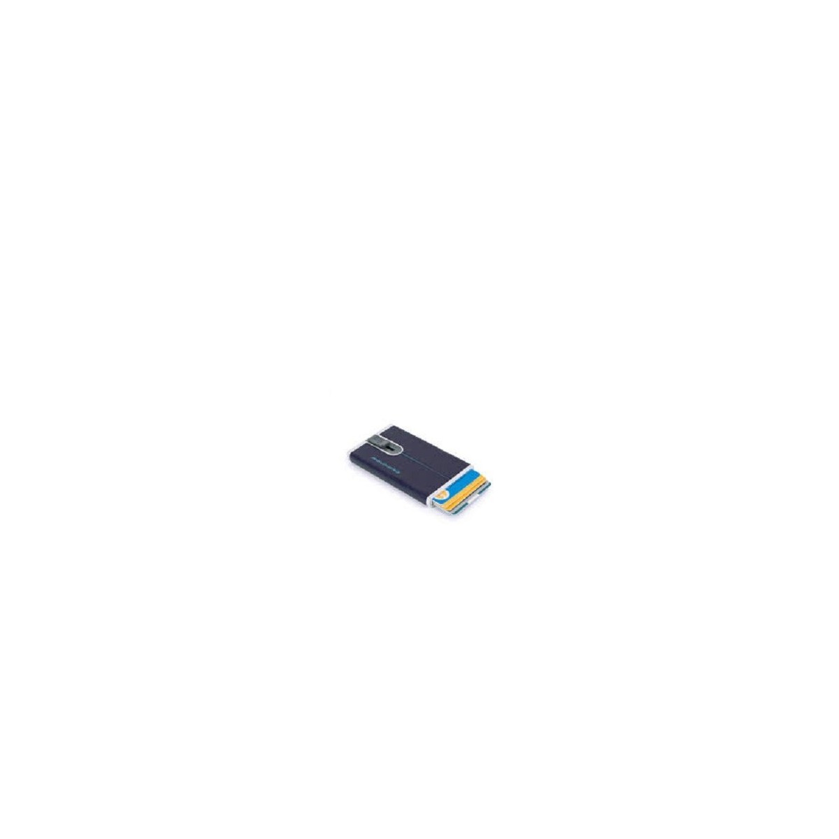 Piquadro Blue Square Baconnote-Etui und stabiler Kartenhalter aus blauem Leder