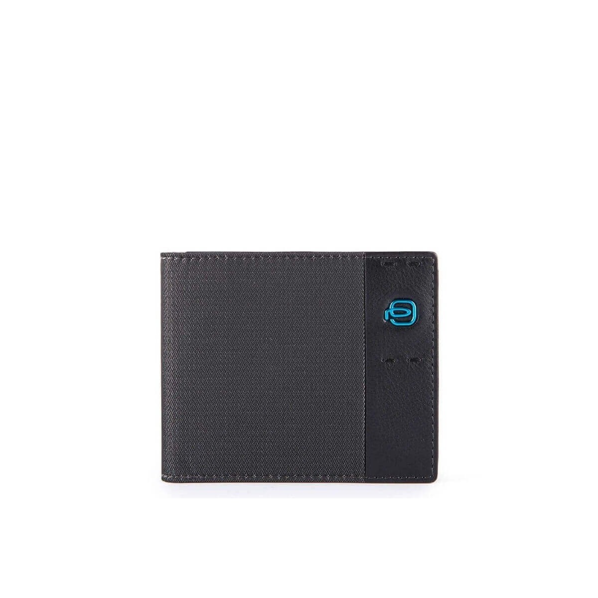 Herrenbrieftasche Pulse 16 Piquadro aus Leder und grauem Stoff
