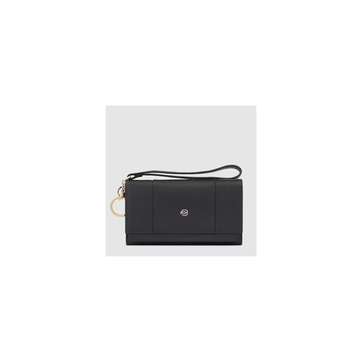Piquadro horizontale Pochette-Brieftasche für Damen, Circle-Kollektion, aus echtem schwarzem Leder, mit Dokumentenfach, 12 Kartenfächern, Münzfach, abnehmbarem Schlüsselhalter, Einzelverschluss mit Knopf, abnehmbarem Griff, interner Handytasche.