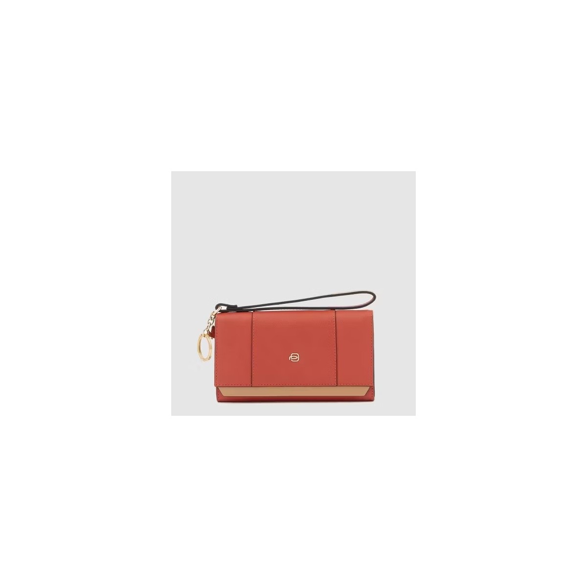 Piquadro horizontale Pochette-Brieftasche für Damen, Circle-Kollektion, aus ziegelfarbenem Echtleder, mit Dokumentenfach, 12 Kartenfächern, Münzfach, abnehmbarem Schlüsselhalter, Einzelverschluss mit Knopf, abnehmbarem Griff, interner Handytasche.