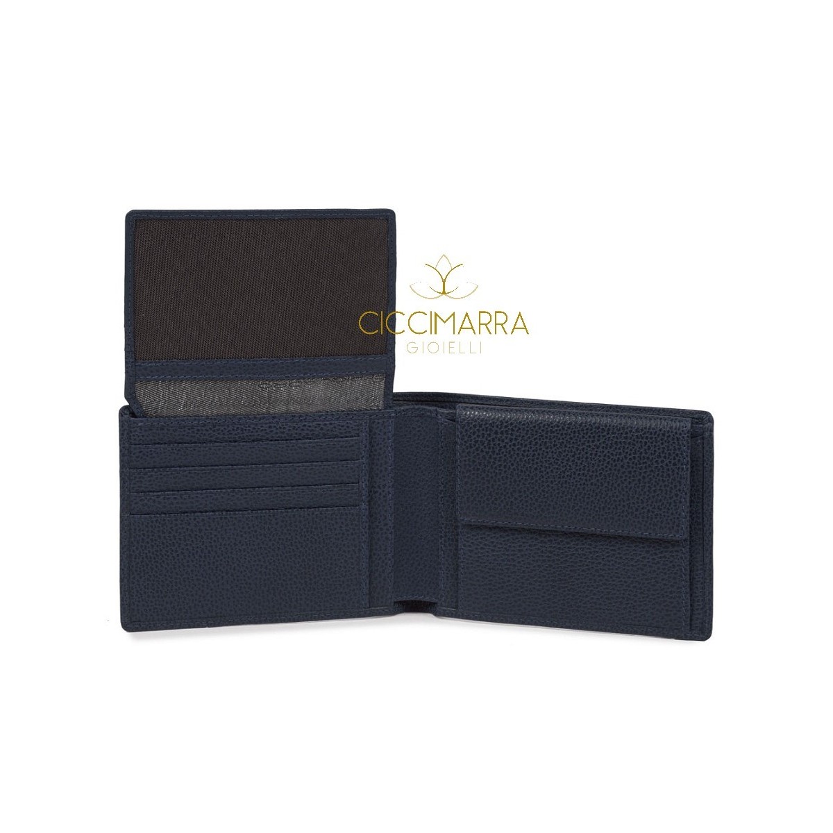 Brieftasche, aus der Erse-Linie, aus blauem Leder mit Dokumentenhalter, Münzfach und Kreditkartenetui