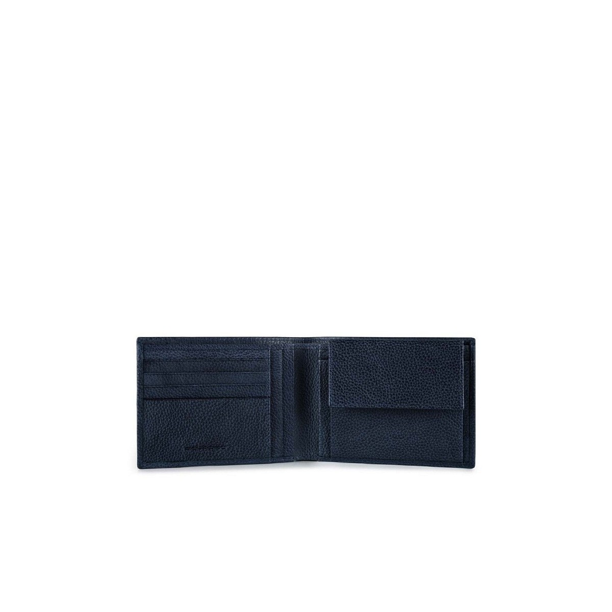 - Herrenbrieftasche mit Münzfach aus der P15S-Linie in Nachtblau. Die P15S-Kollektion besteht aus vegetabilem Kalbsleder, das sich weich anfühlt. Metallzubehör hat ein mattschwarzes Palladium-Finish.