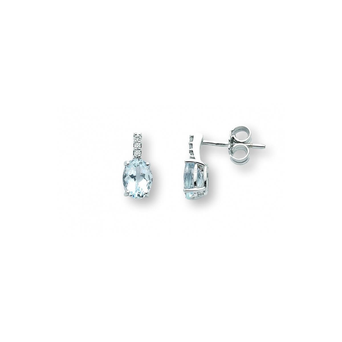 Miluna Ohrringe aus der Le Gemme Kollektion aus 18kt Weißgold mit Aquamarin im Brillantschliff ct. 1,24 und natürliche Diamanten im Brillantschliff 0,046 ct