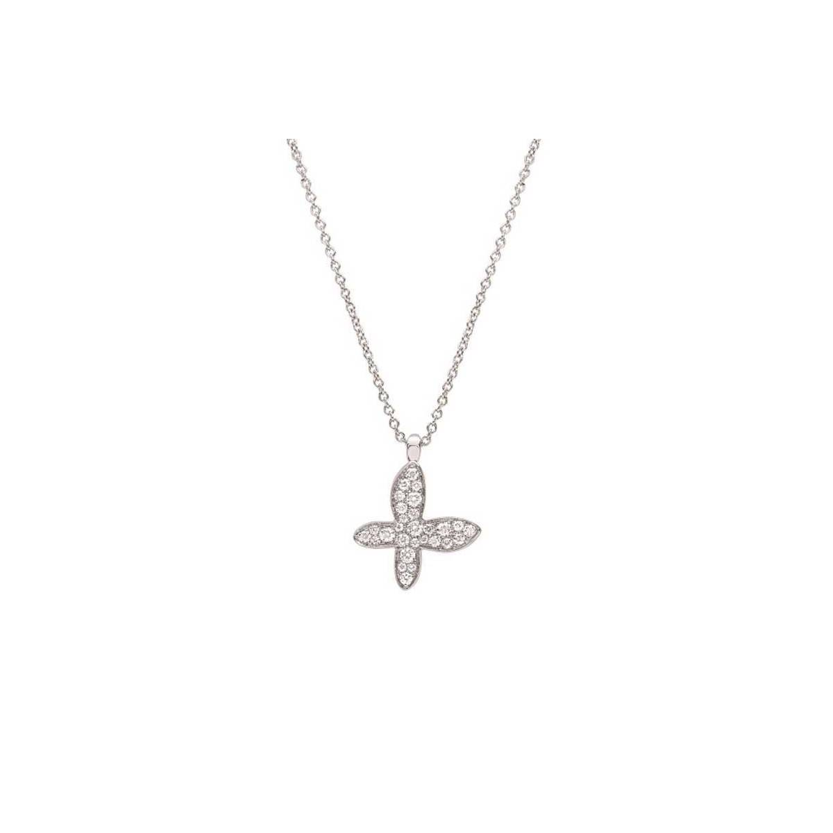 Halskette aus 18 Karat Weißgold mit Collier-Frau und Schmetterlingsmotiv in Diamanten im Brillantschliff Pavé ct. 0.20, die neue Kollektion Freevola Mimì Milano