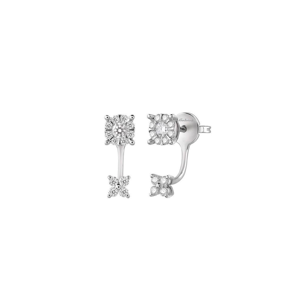 SALVINI DAPHNE SHINE DEKORATIVE BEWEGUNG VON DAPHNE KOLLEKTION RÜCKKEHR IN DAPHNE SHINE VORSCHLÄGEN In der Daphne-Glanz-Schmucksammlung wird jeder Diamant noch kostbarer durch eine Krone von kleinen Brillanten, die in einem weißen Goldrahmen eingebettet sind, der in das reine Licht der Steine verschwindet. Der Ring ist für die Eleganz seines Designs bekannt; Collier's werden in zwei Varianten vorgeschlagen, um die Wünsche der Jüngeren zu befriedigen; Die Ohrringe fordern die Grenzen der Stiltrends heraus: Der klassische Lichtpunkt hat sich verdreifacht und wird auch in der rock-chic-Version vorgeschlagen, die die Lappenlinie zieht. Weißgold Ohrringe 750 ‰ mit Brillant Brillant geschliffene Diamanten ct. 0,46 G VS VG / VG