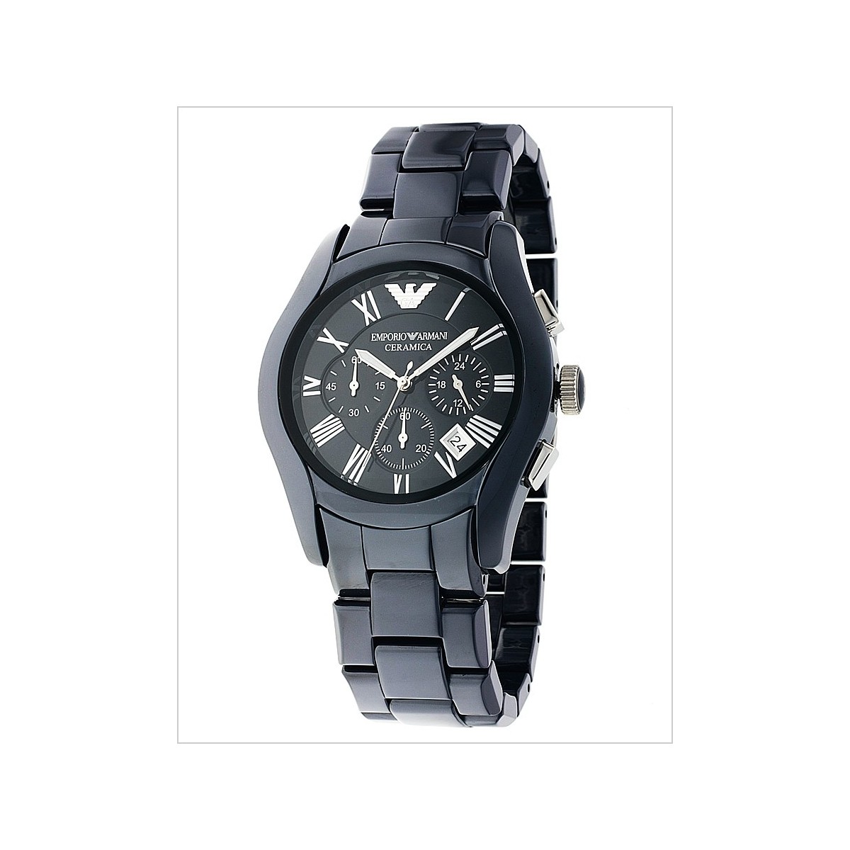 Chronograph Herrenuhr Quarz Bewegung Keramikgehäuse und Armband, schwarzes Zifferblatt mit Indizes Siver; dater