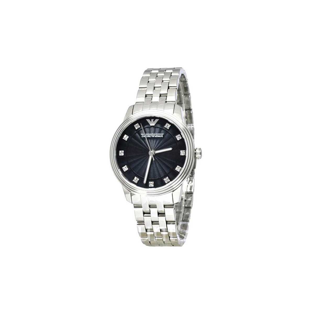 Damen-Quarz Uhrwerk, Edelstahlgehäuse und -Armband, schwarzes Zifferblatt mit Blaulicht