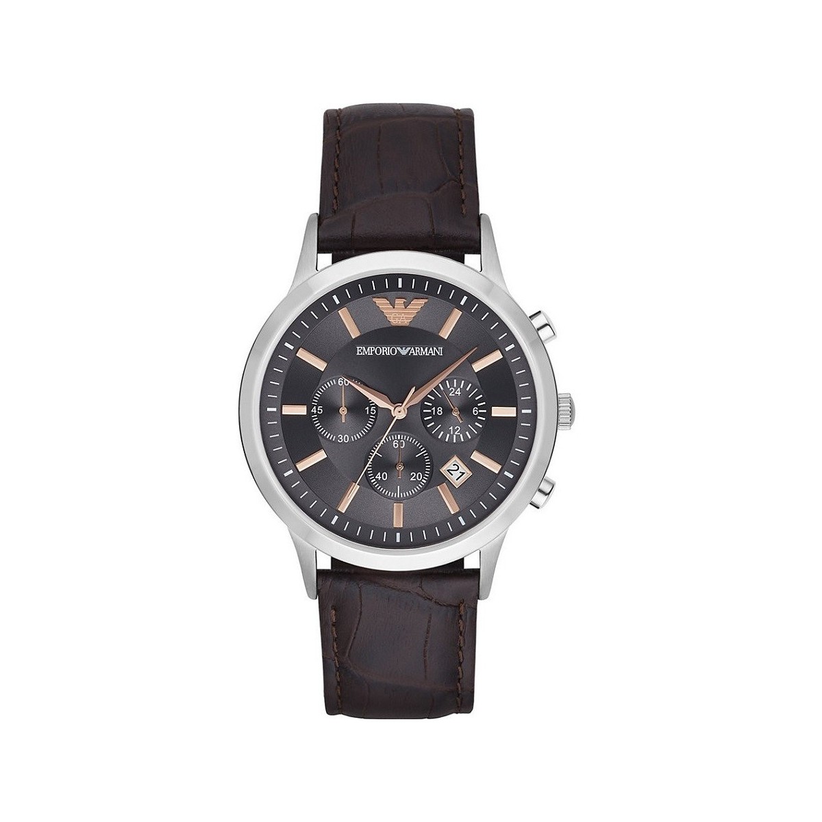 Klassische Sport Linie/Renato mit Quarz-Chronographenwerk mit Datum, Edelstahlgehäuse, schwarzes Lederband, verbrannte Erde und graue Zifferblatt mit angewandter Index stieg Licidopvd Stahl.