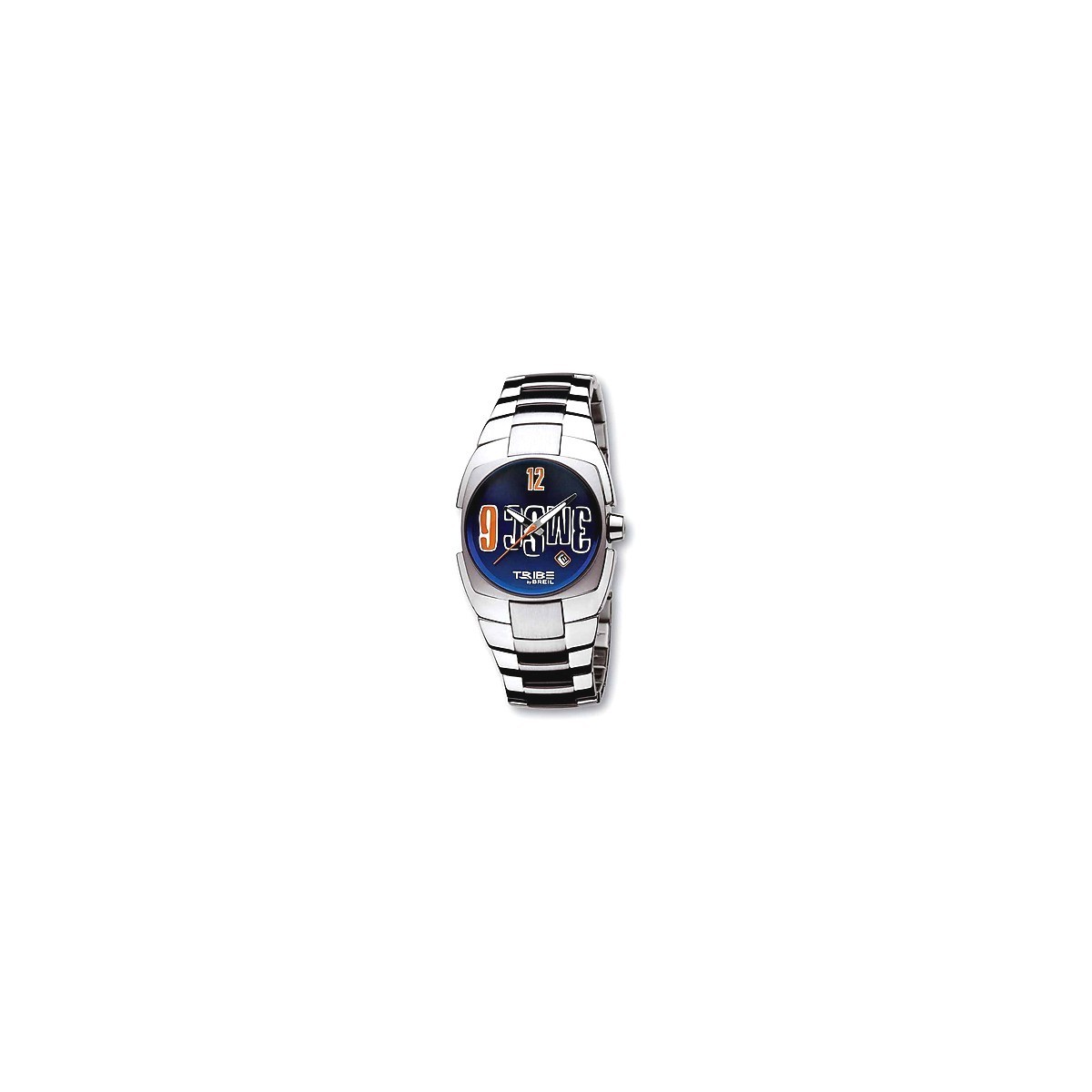 Sehen Sie mit Edelstahlgehäuse und Armband. Modell 3 Meter über den Himmel. Quarzwerk. Schrauben Sie-Gehäuseboden. Datumsfenster. Blau/Orange telefonisch wasserdicht 100 m Edelstahl Armband original Verpackung Bilux Breil Tribe Uhren offizielle Breil Tribe Uhren 2-Jahres-Garantie