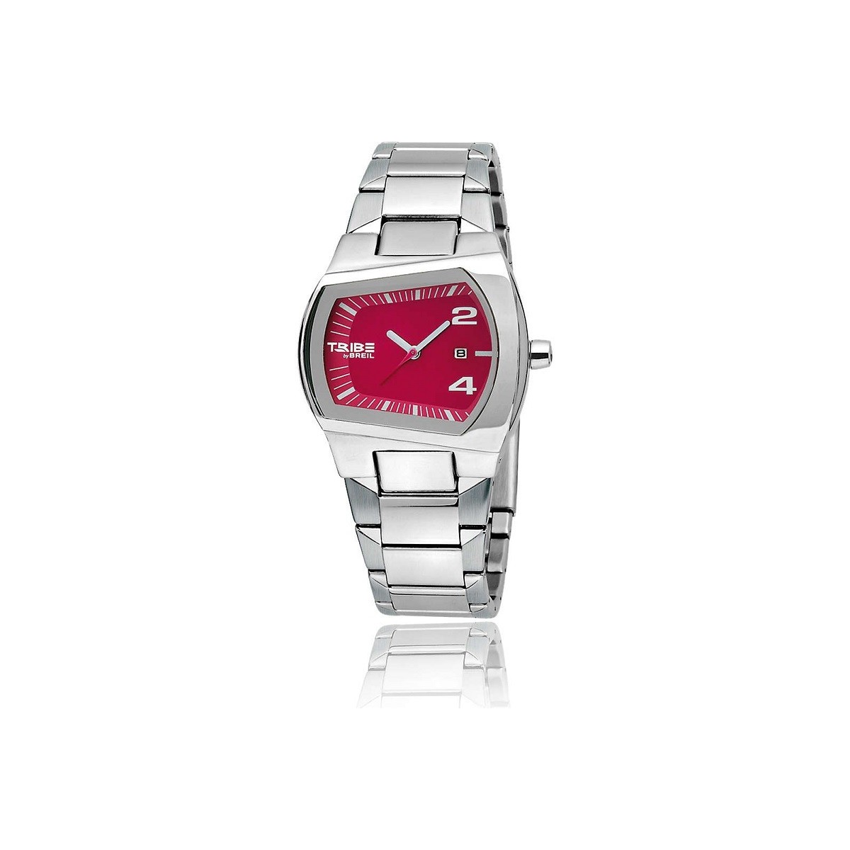 Breil Damenuhr, aus Stahl mit magentarotem Zifferblatt, quadratischem Gehäuse und Armband aus Stahl; Datum enthalten