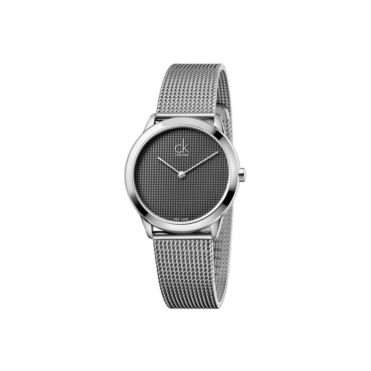 Minimale Linie Uhr mit Edelstahl-Gehäuse und Armband, dunklen grauen Zifferblatt Mesh und Quarz Werk