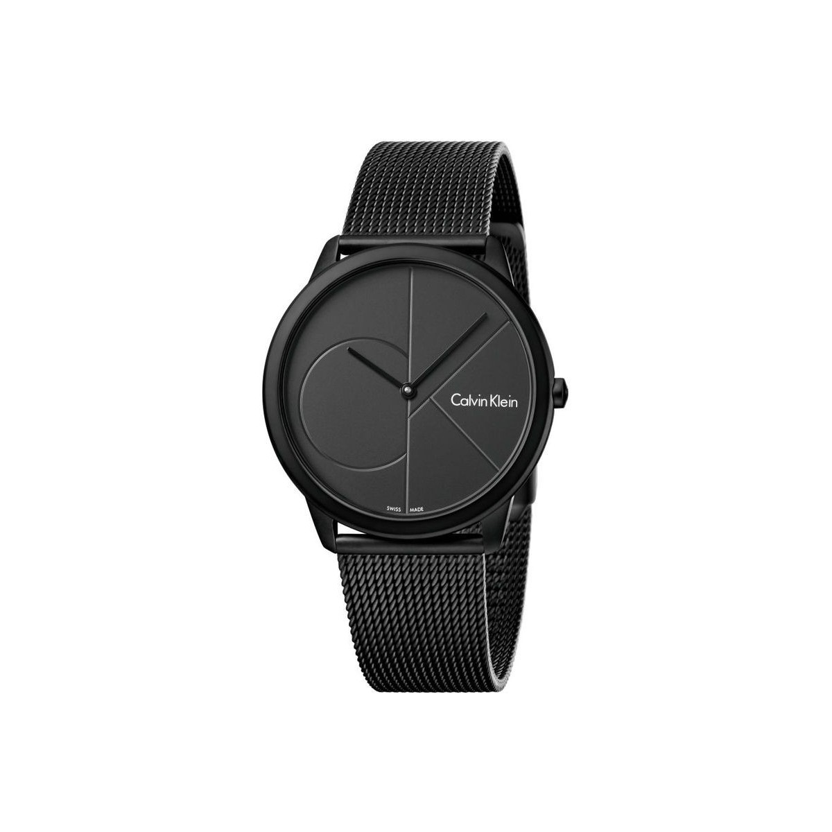 Herren Calvin Klein Quarzuhr mit weichem Stahlgitterarmband in Mailand; Einziehbarer Verschluss, schwarzes Zifferblatt graviertes Logo ck, schwarze Indizes, rundes Gehäuse. Minimal neue Sammelleitung-