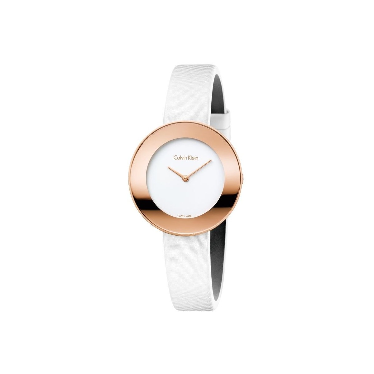 Calvin Klein Chic - Raffiniertes Satinband. Unterscheidungskraft. Calvin Klein schick. Wie eine Symphonie aus Lichtern und Materialien bietet dieses Modell dank der kontrastierenden Materialien von Gehäuse und Armband ein Lichtspiel. TYP Frau - - FINISH Poliert - CASE MATERIAL PVD Roségold - DIAL COLOR Weiß - STRAP MATERIAL Satin - STRAP COLOR Weiß - - - BEWEGUNGSART Quarz - BEWEGUNG ETA 901.001 - FUNKTIONEN Stunden, Minuten - Swiss Made - WASSERDICHT 3 bar (bis zu 30 Meter) - GEHÄUSEDURCHMESSER 38,00 mm - - GLAS Mineral - Art des Verschlusses Dornschließe