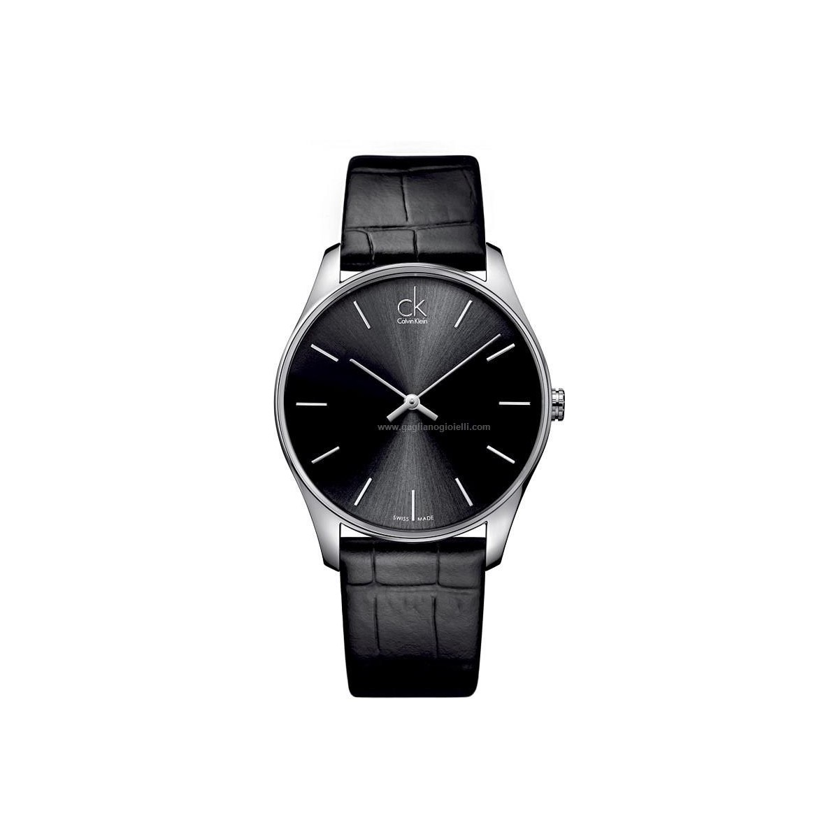 Calvin Klein Classic Gent - Essentielles Lederband. Timeless, ursprünglich im Jahr 2002 auf den Markt gebracht, ist Calvin Klein classic dank seiner Aura dezenter Eleganz immer eine Uhr mit starker Wirkung. TYP Man - - FINISH Poliert - CASE MATERIAL Stahl 316L - DIAL COLOR Schwarz - mit Indexen - STRAP MATERIAL Leder - STRAP COLOR Schwarz - - - BEWEGUNGSTYP Quarz - ETA MOVEMENT F03.111 - FUNKTIONEN Stunden, Minuten - Swiss Made - WATERPROOF 3 bar (bis zu 30 m) - GEHÄUSEDURCHMESSER 38,00 mm - - GLAS Mineral - VERSCHLUSSART Schnalle