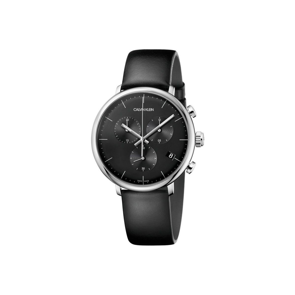 Chrono Mascolino. Retro-modern. Calvin Klein mittags. Eine Fusion aus radikaler Modernität und zeitloser Raffinesse. Diese Uhr, die an Vintage-Modelle erinnert, ist an ihren weichen Linien, einem gebogenen Glas und einem Steingehäuse erkennbar. Mann