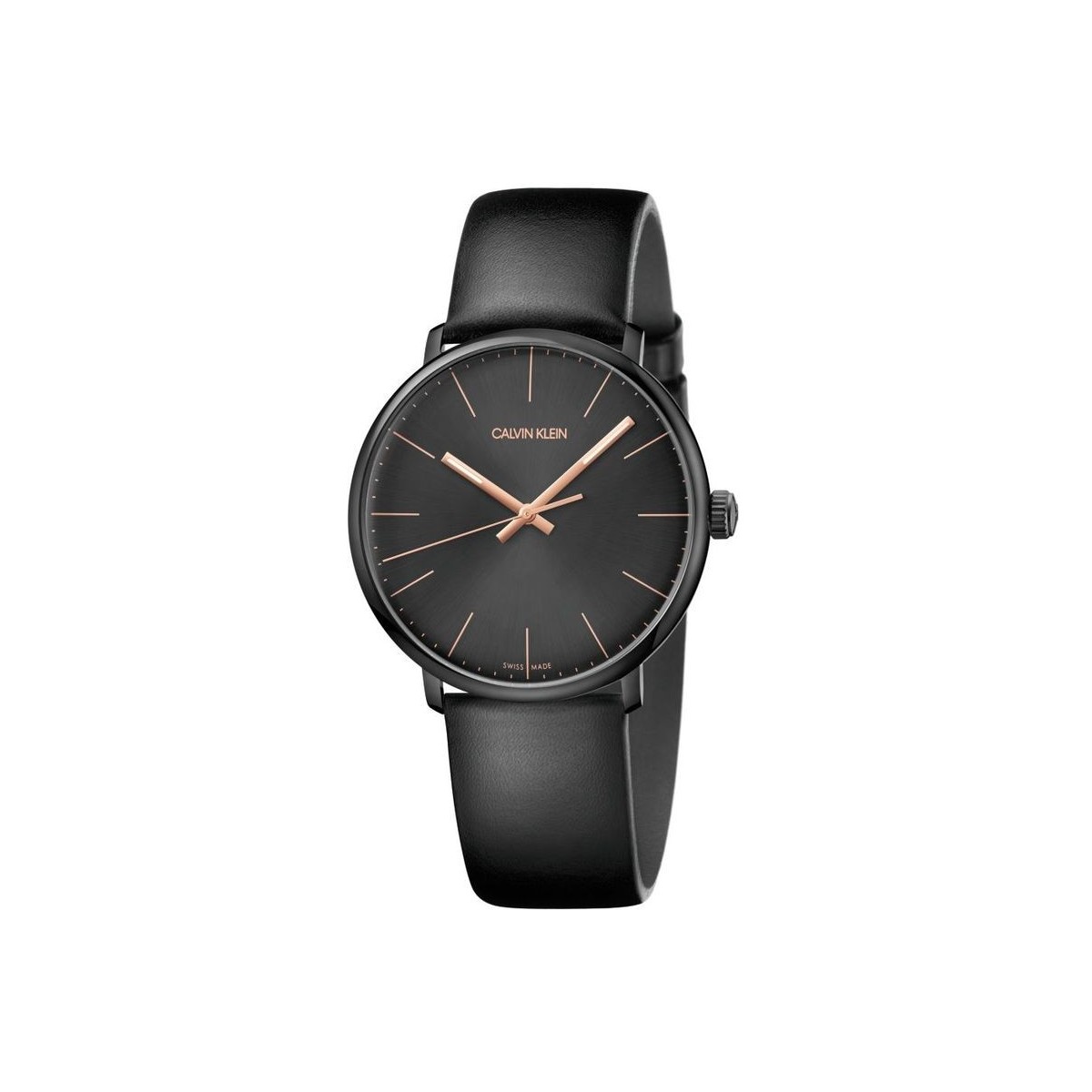 PVD Lederband Mascolino. Retro-modern. Calvin Klein mittags. Eine Fusion aus radikaler Modernität und zeitloser Raffinesse. Diese Uhr, die an Vintage-Modelle erinnert, ist an ihren weichen Linien, einem gebogenen Glas und einem Steingehäuse erkennbar. Mann -