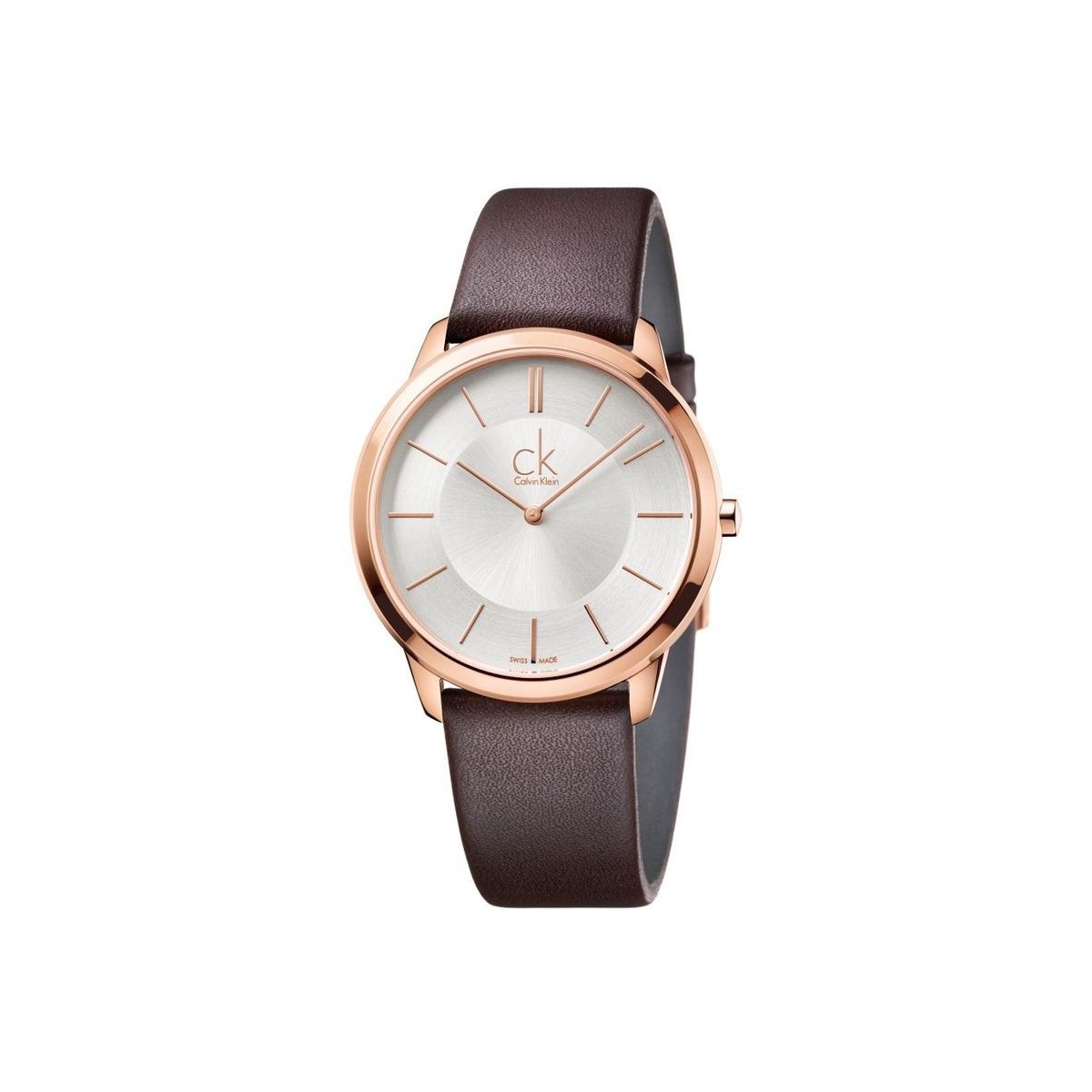 Lederarmband und moderne PVD. Anspruchsvoll. Calvin Klein minimal. Sein zeitloses Design erinnert an den unverwechselbaren Stil der Marke Calvin Klein. Calvin Klein wurde für Männer und Frauen entworfen und ist mit einem Milanese-Strickarmband, einem polierten Stahlgehäuse und einem polierten Zifferblatt ausgestattet.