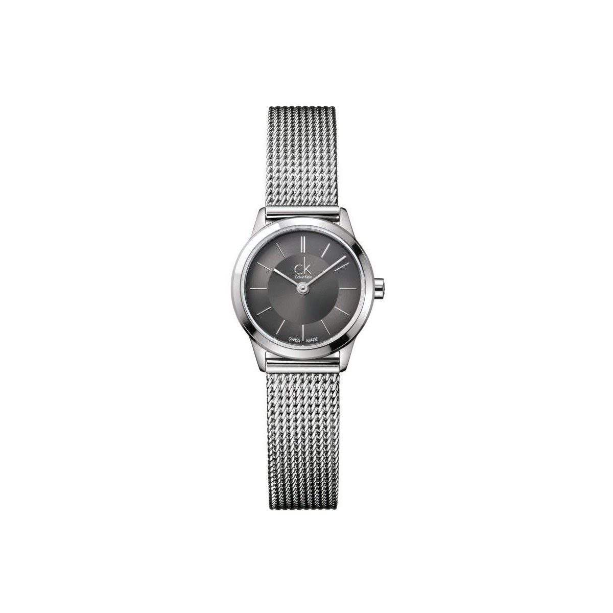 Modernes Stahlarmband. Anspruchsvoll. Calvin Klein minimal. Sein zeitloses Design erinnert an den unverwechselbaren Stil der Marke Calvin Klein. Calvin Klein wurde für Männer und Frauen entworfen und ist mit einem Milanese-Strickarmband, einem polierten Stahlgehäuse und einem polierten Zifferblatt ausgestattet.