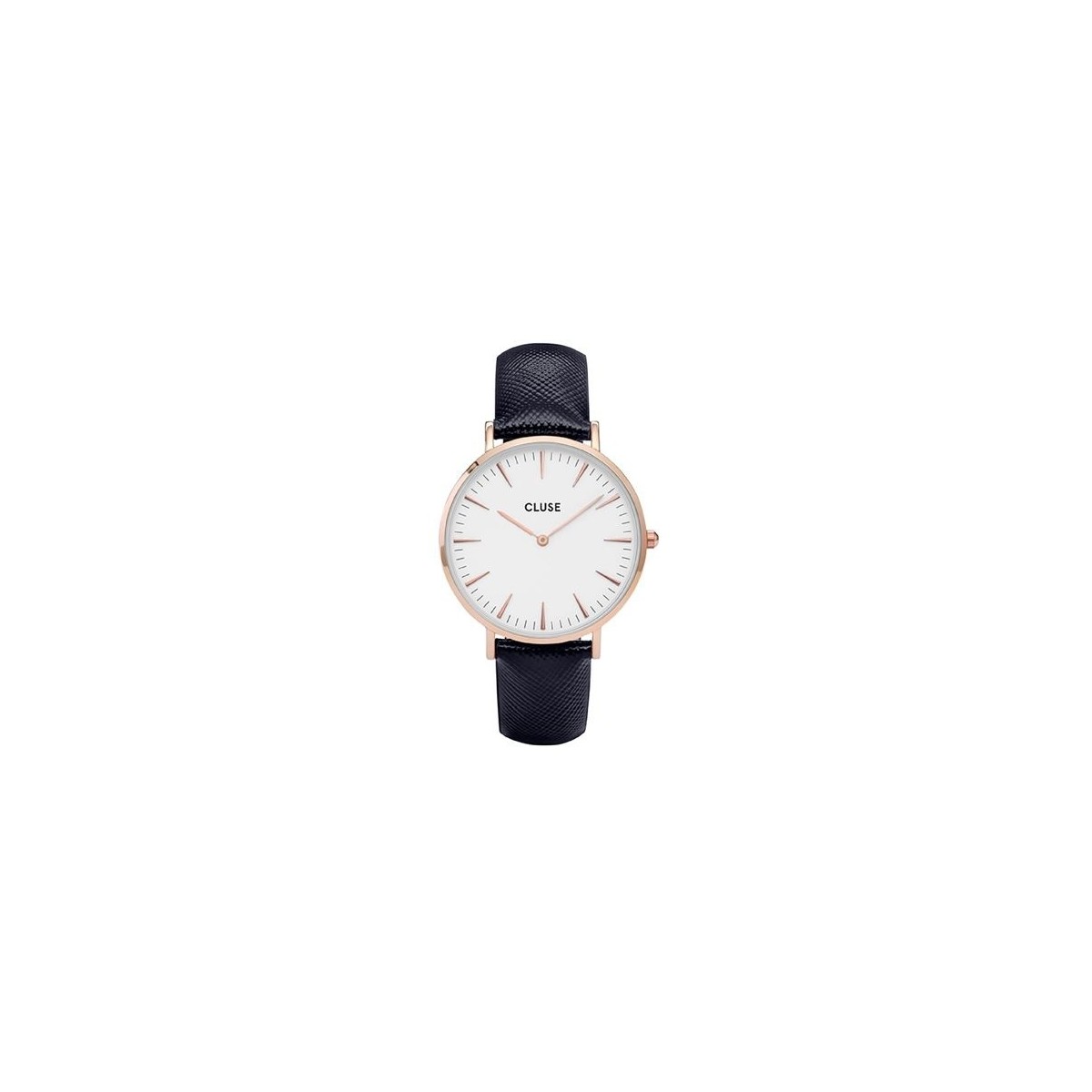 CLUSES Uhrenkollektion: La Boheme, die Form der Runde weißes Zifferblatt, das Armband besteht aus Leder behandelt blau, rose gold plated Case Quarz MVT. MIYOTA 2025 2/Sphären unisex.