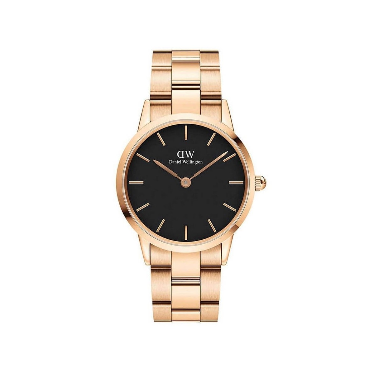 Die Daniel Wellington Iconic Link Uhr mit ihrer edlen Roségold-Beschichtung ist die ideale Uhr für eine elegante Frau. Iconic Link hat ein klassisches Design, das in einem modernen Schlüssel mit Handwerkskunst neu interpretiert wurde. Klassisches schwarzes Zifferblatt mit 12 Kerben.