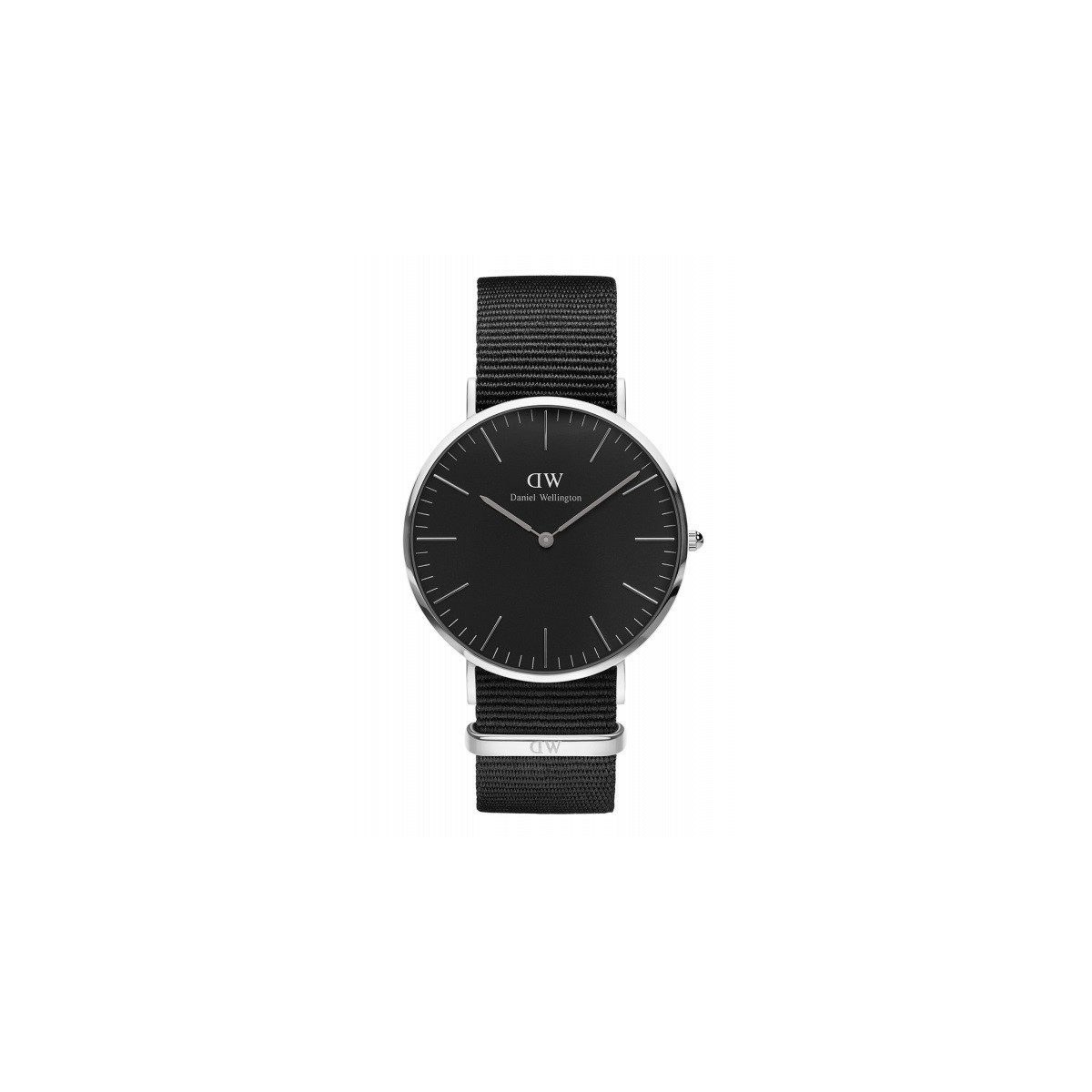 Klassische schwarze Cornwall große mit Edelstahl Silber, Quarzwerk, schwarzes Zifferblatt und Armband nur mal BORN in schwarzer Gewebe-DW00100149 ansehen