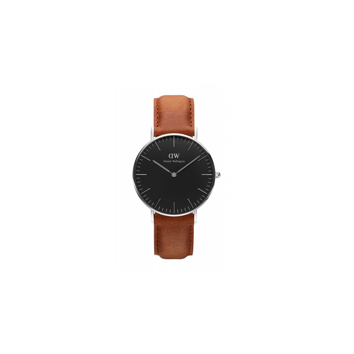 Watch Classic Black Durham klein mit Edelstahl Silber mit Quarz Bewegung nur die Zeit, schwarzen Zifferblatt und Gurt leichte braune glatte Leder-DW00100144