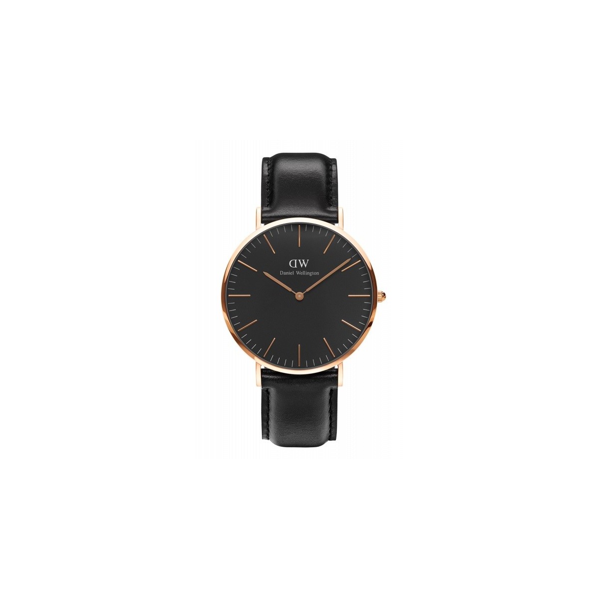 Klassische Big Black PVD Stahl Gehäuse mit Rose, Sheffield mit Zeit einzige Quarzwerk, schwarzes Zifferblatt und schwarzem Glattleder Riemen-DW00100127