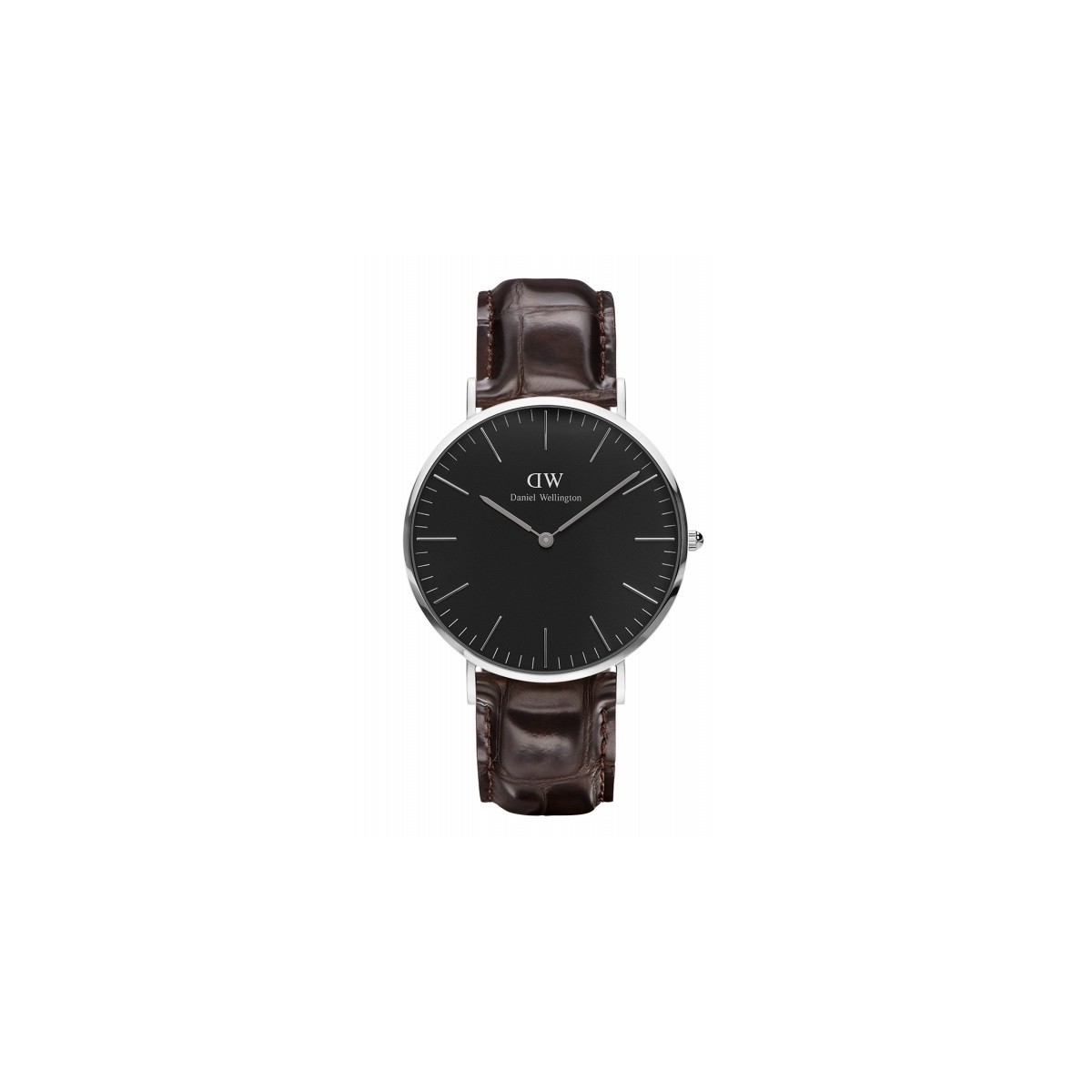 Beobachten Sie klassisches Schwarz York große mit Edelstahl Silber, Quarzwerk, schwarzes Zifferblatt und Lederband, nur mal Krokodil braun-DW00100134 drucken