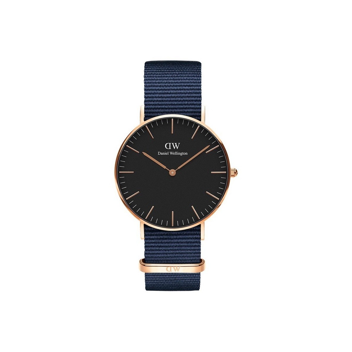Watch Classic Black Line Roségold PVD-Gehäuse, Quarzwerk, schwarzes Zifferblatt und nachtblaues NATO-Stoffband
