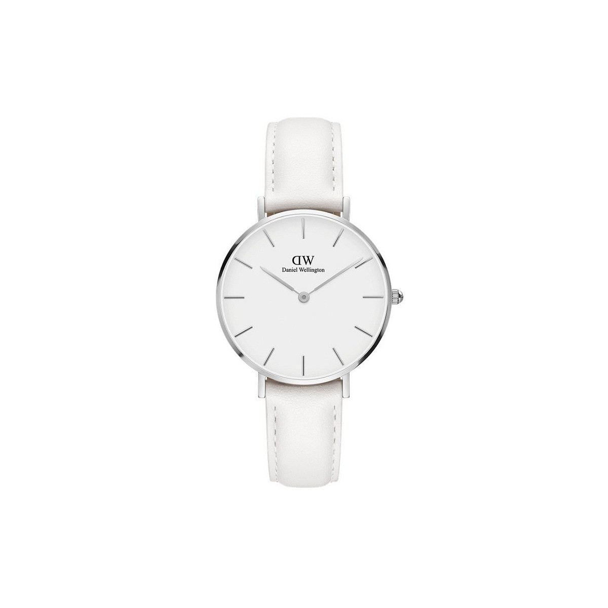 Uhr Classic Line Petite Edelstahl-PVD-Gehäuse, Quarzwerk, weißes Zifferblatt und weißes Lederarmband