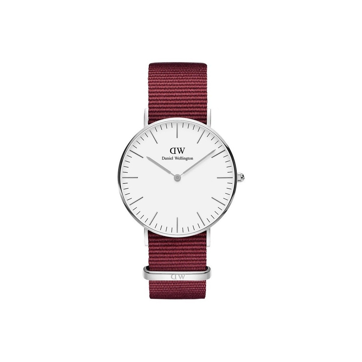 Ausgestattet mit klassischen Features wie dem dünnen Gehäuse, silbernen Details und dem NATO-Armband in Rubinrot ist die Classic Roselyn eine praktische Uhr, die sowohl für den Tag als auch für den Abend geeignet ist.