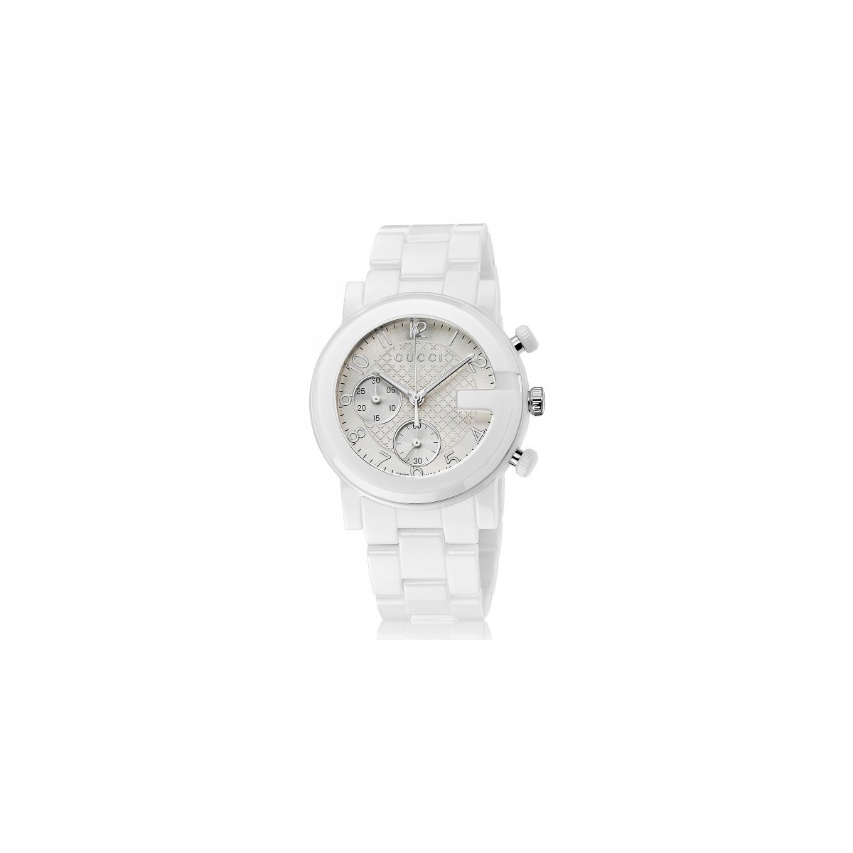 Gucci G-Watch Chrono White Dial Tone Frauen mit Schweizer Quarz Bewegung und weißer Keramik Armband