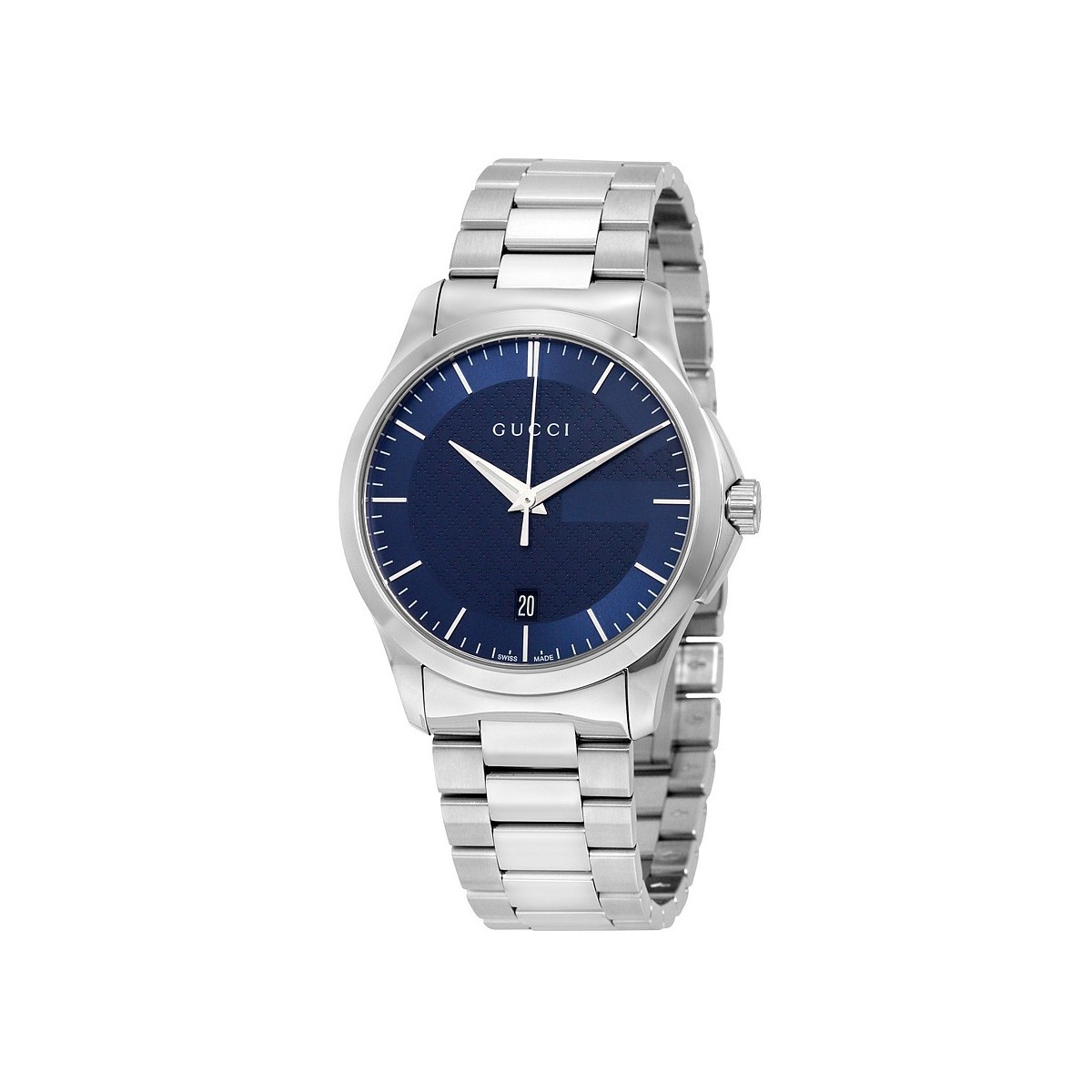 Gucci G-Timeless Quarzuhr Medium ist mit Stahl-Gehäuse und Armband mit Sahne und Silber Diamant Muster Zifferblatt für elegante und raffinierte Liebe zum Detail ausgestattet.