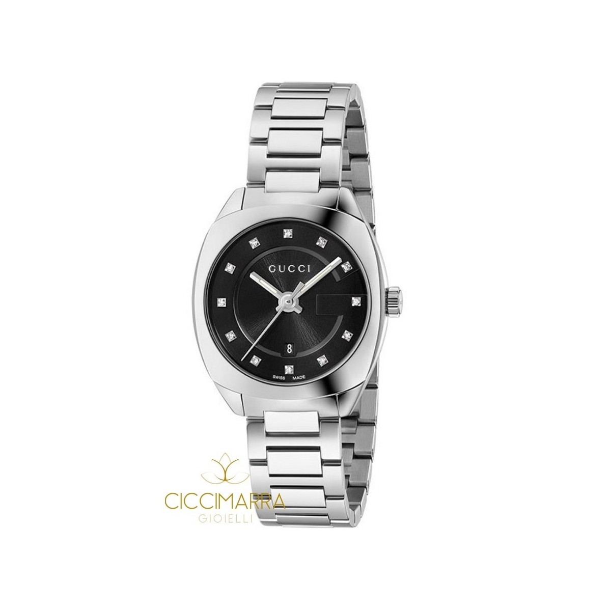 Watch Online-DD-2570, Edelstahl-Gehäuse und Armband, Quarzwerk, schwarzes Zifferblatt mit Runde brillant geschnitten natürliche Diamanten auf die elf