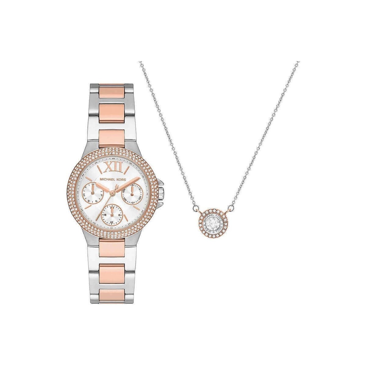 Michael Kors Camille Damenuhr und Halskette, Set aus Roséstahl und Kristallen