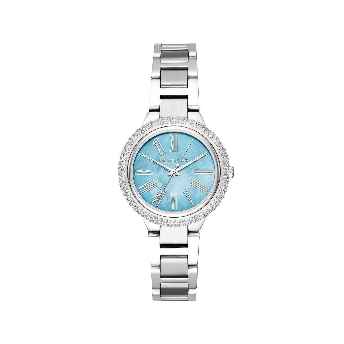 Damenuhr, aus der Mini Taryn Linie, mit Edelstahlarmband, Strassgehäuse und türkisblauem Perlmutt-Zifferblatt MK6563