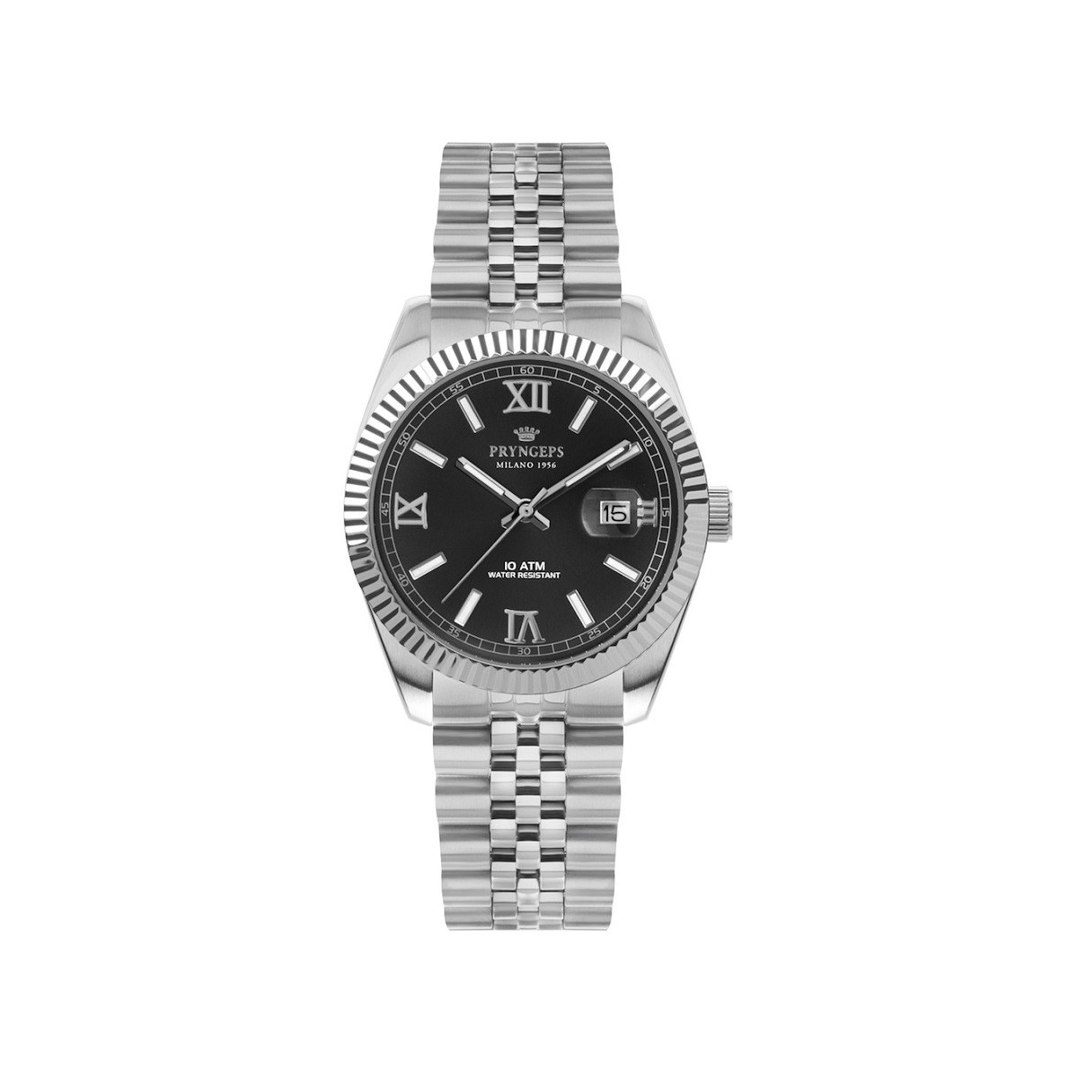 PRYNGEPS A821 DATEJUST HERREN STAHL SCHWARZES ZIFFERBLATT