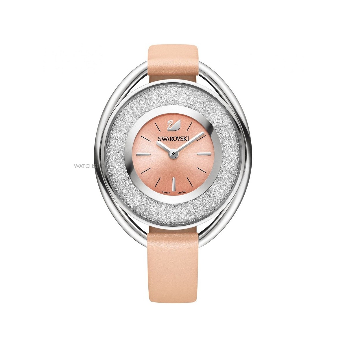 Swarovski-Handgelenk-Instrument aus dem exklusiven Oval Profil ideal für deinen Style geltend machen, jeden Tag. Beschreibung: Oval hier 37 x 43 mm mit Stahl Exterieur und Interieur, verziert mit Kreisprofil ca. 1700 klarCrystal; Radialmuster Zifferblatt Rosa Index und bei 3, 6 und 9; Rosa Lederarmband mit Dornschließe schliesse; wasserdicht; Schweizer Quarzwerk.
