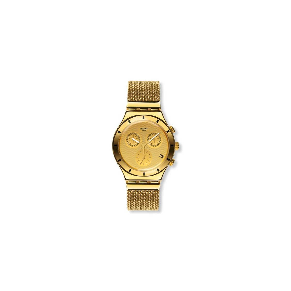 Swatch Uhr Iron COLDEN decken mit Chronograph Edelstahlband und gold farbig