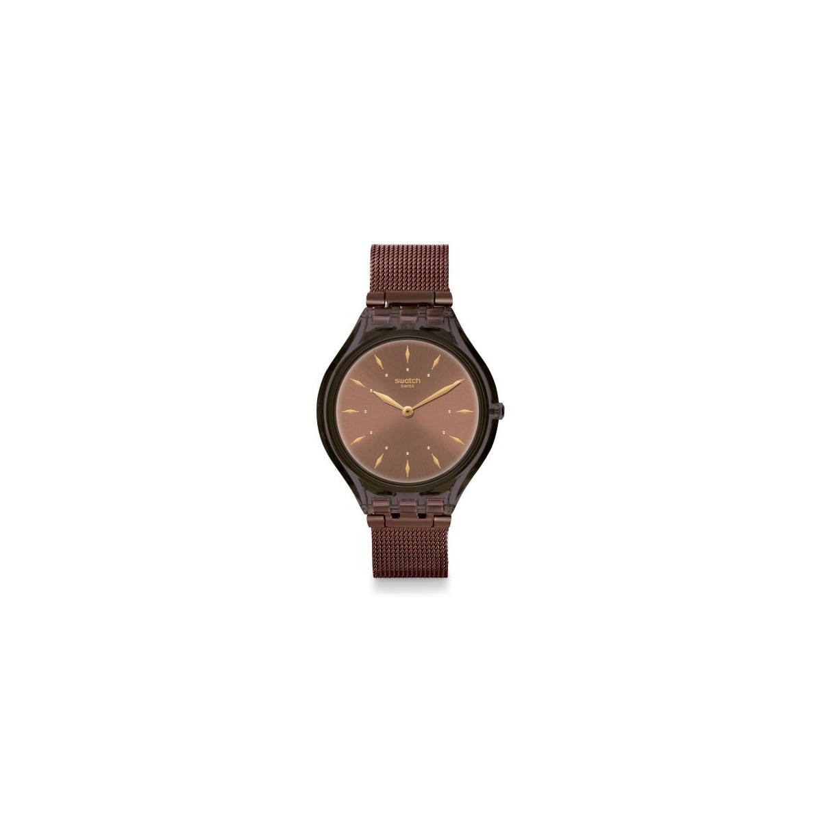 braune Swatch-Farbkollektion 2018 XMasCollection Hergestellt in der Schweiz Mechanik: Wasserdicht Quarz: 3-Stab-Farbe Artikel: Braun Armbandmaterial: Edelstahl (Milanese) Gehäuseform: Rund Gehäuse: Breite 36,80 mm Dicke: 5,40 mm Höhe: 41,80 mm
