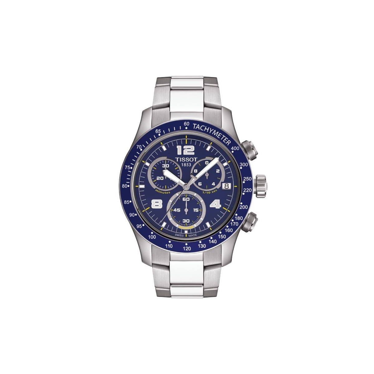 Tissot V8-Armbanduhr mit Edelstahlgehäuse und Armband mit blauen Zifferblatt und Lünette blau