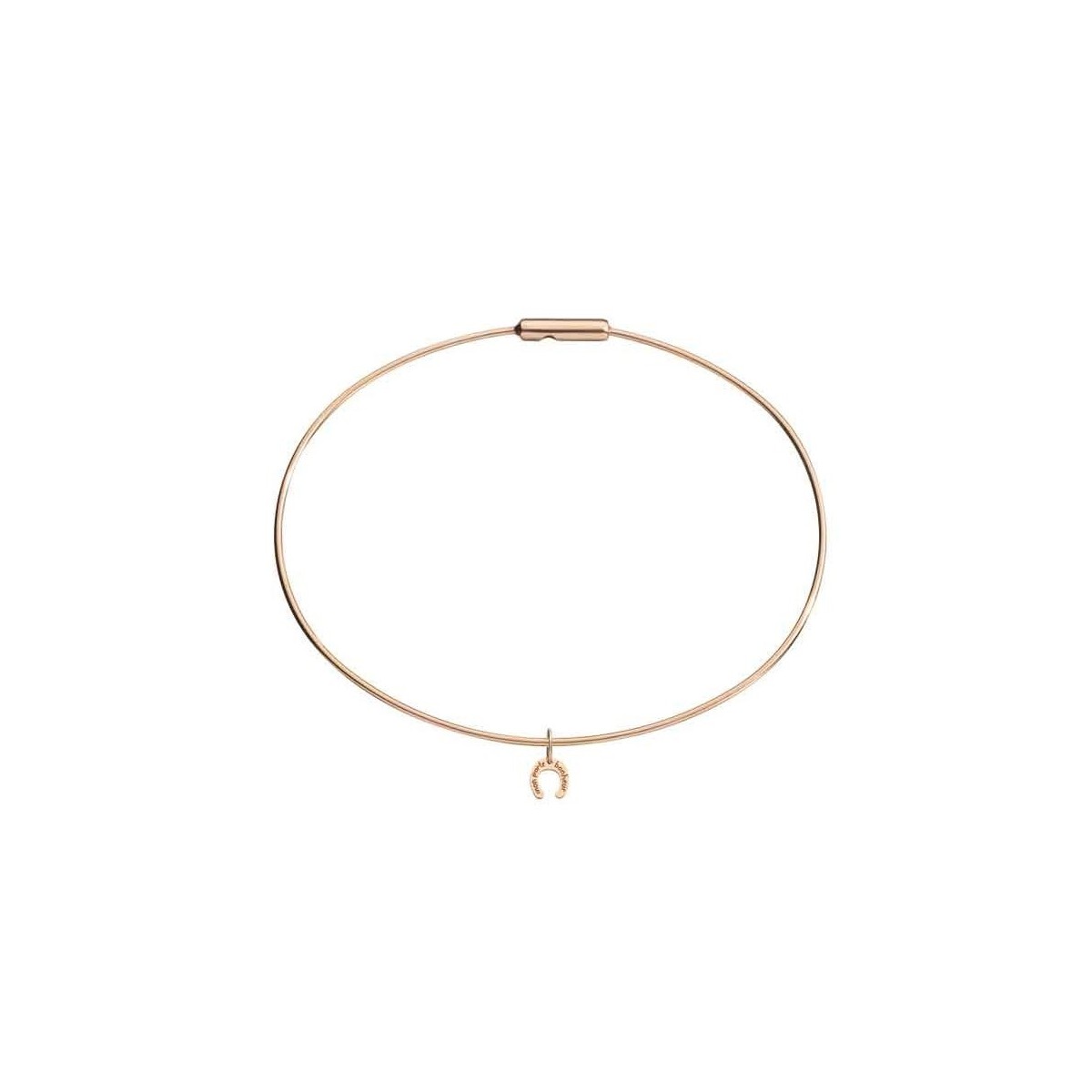 Armband mit Fuß und Anhänger in Form eines Hufeisens, alles in 18 Karat Gold. "Lächle bei Hindernissen und reite Glück".