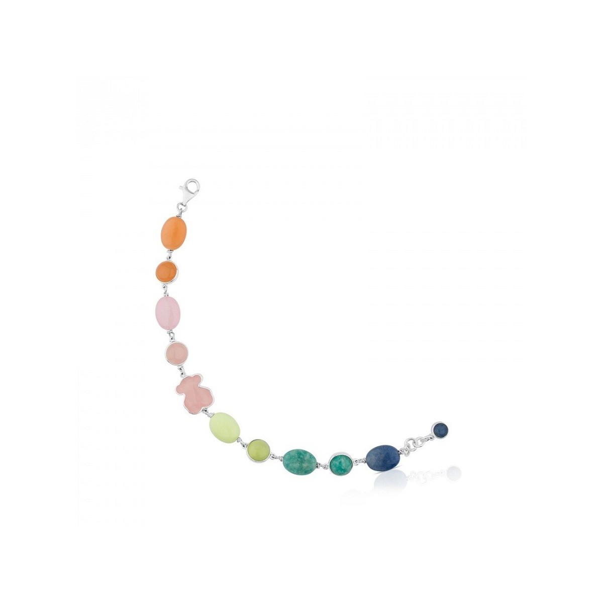 925 Silber Armband mit Teddybär mit rosa Quarzit, Gaspeite, Dumortierite, Amazonite und orange Quarzit.