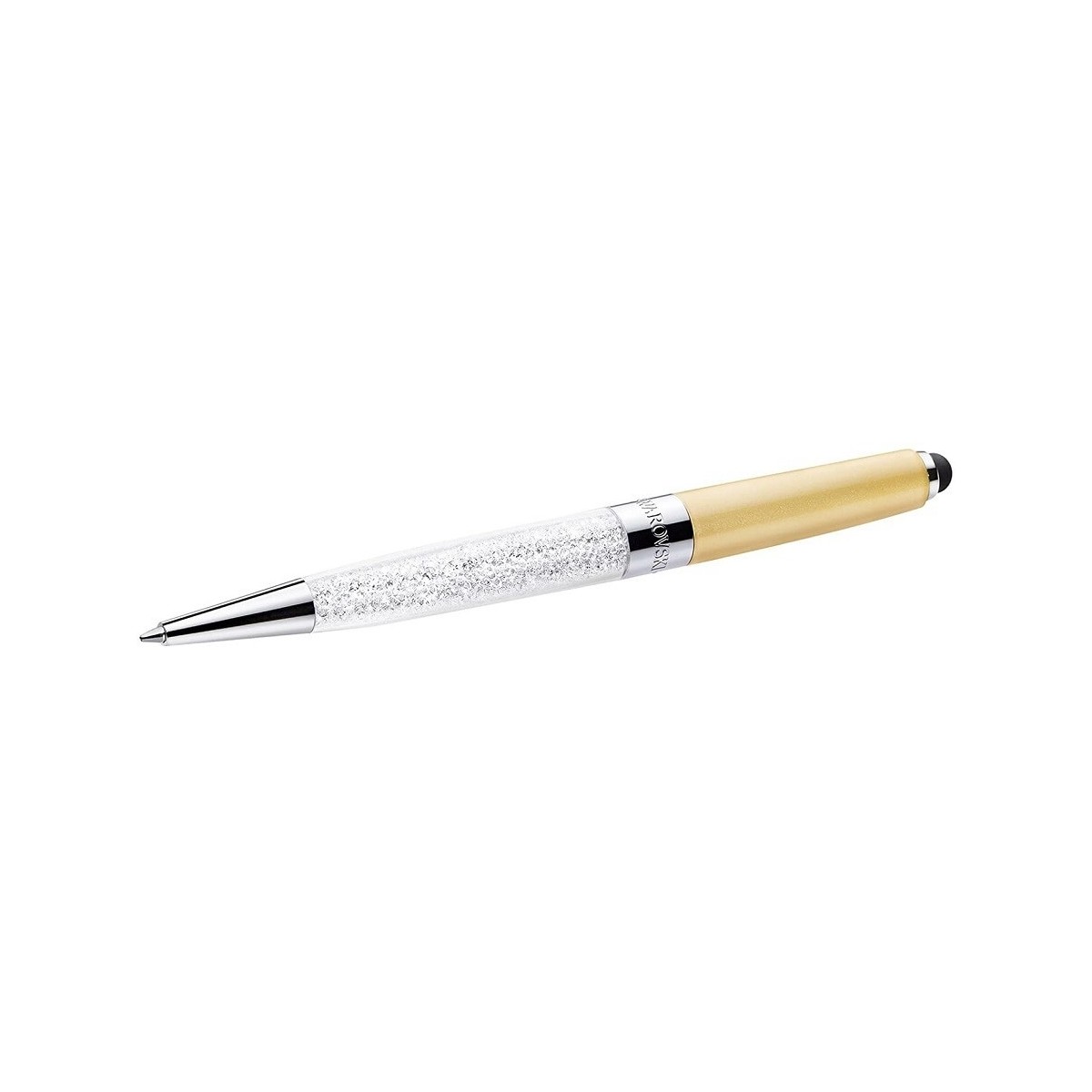 Kugelschreiber, Crystalline Stardust Stylus-Linie, aus goldenem Metall mit Swarovski-Kristallen im Schaft und verchromten Details. Stift geeignet zum Schreiben auf Tablets und Mobiltelefonen. Twist-Öffnung