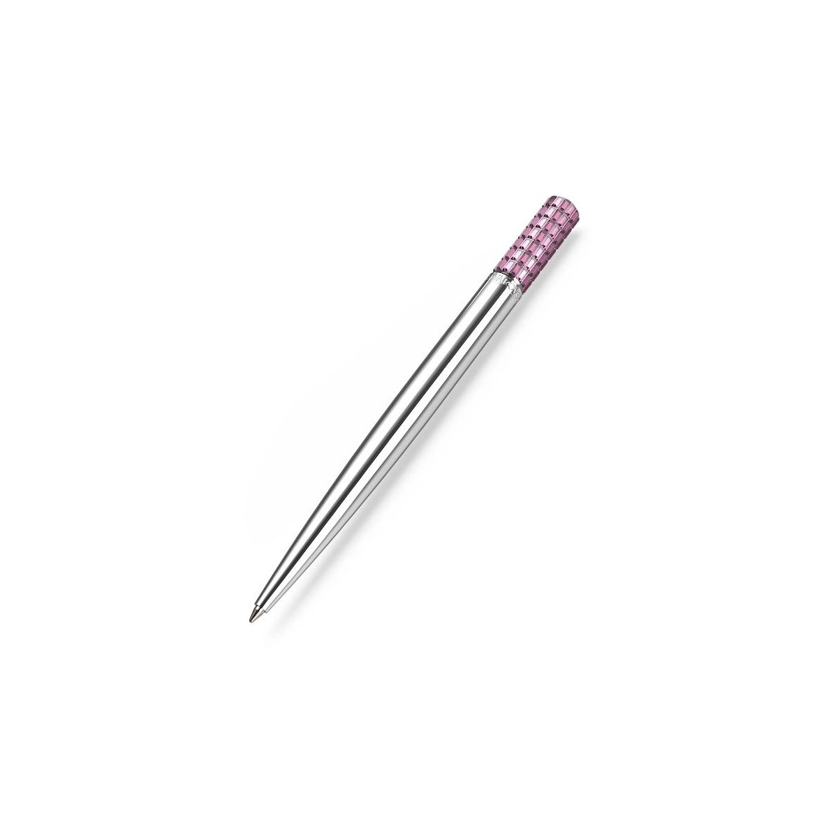 Der Kugelschreiber von Swarovski ist von der Lucent-Kollektion inspiriert und besteht aus Metall mit elegant glänzender Rhodinierung, die mit kleinen rechteckigen rosa Kristallen am Ende verziert ist und den Stift zu einem nüchternen und eleganten Accessoire macht, das sich perfekt zum Verschenken und Verwöhnen eignet.