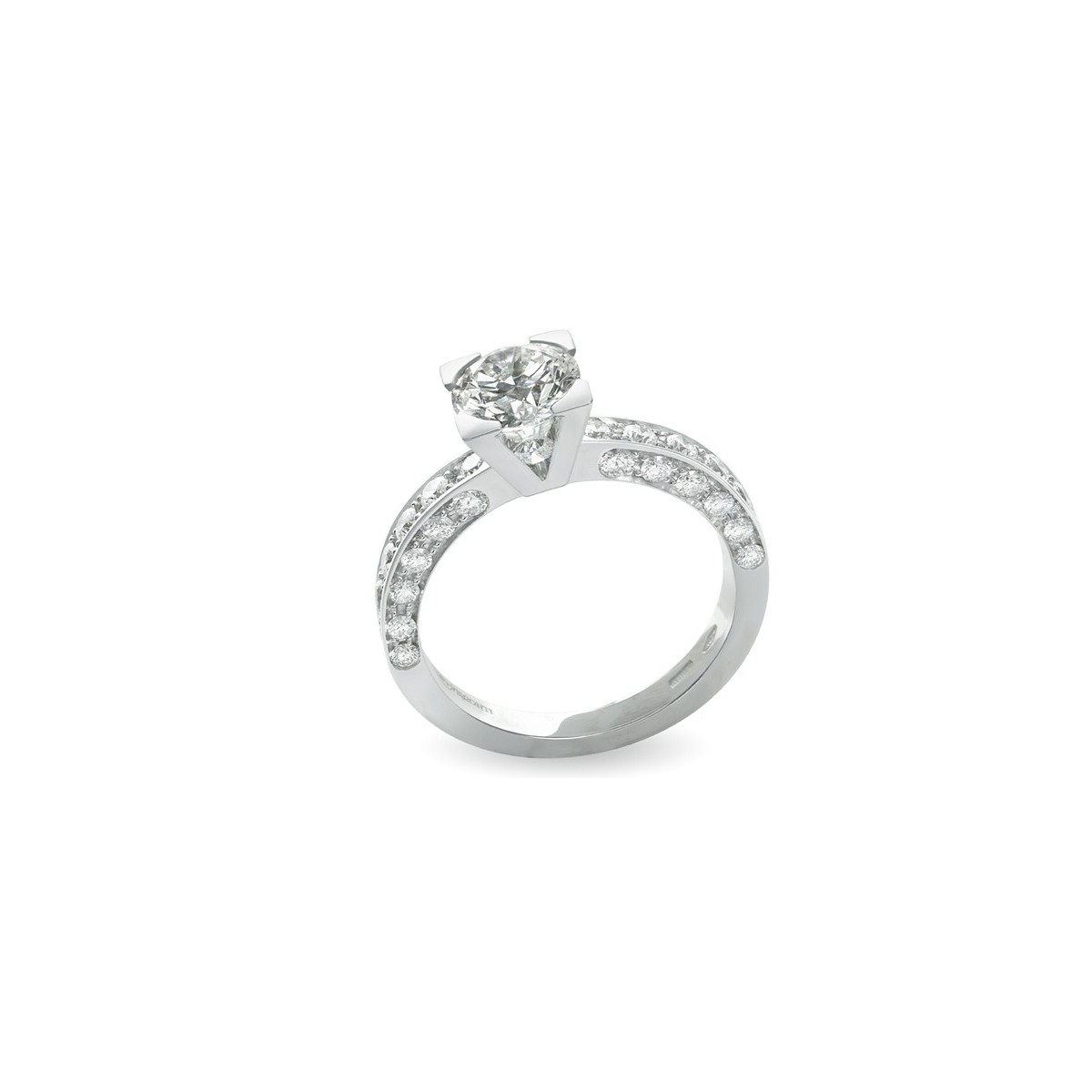 Solitärring mit natürlichen zentralen Diamant und auf dem Stamm als auch, Familie Sammlung 18 Karat Weißgold Icon 1 Linie Giorgio Visconti unterzeichnet