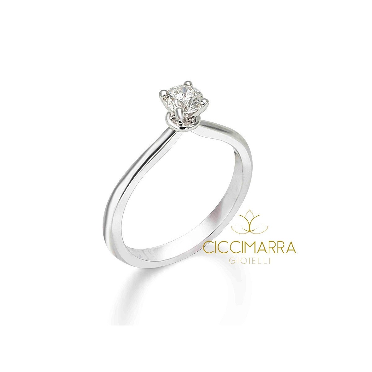 Ein Ehering oder Verlobung par excellence, dieser Solitaire drückt seine ganze Schönheit mit der Einfachheit des Rahmens mit vier Kiefern mit der Besonderheit eines kleinen Kreises aus, der unter den Kiefern und dem Ganzen sichtbar ist, das in einem einfachen und abgerundeten Stamm aber gleichzeitig stark eingesetzt wird und robust, damit Sie die Ruhe haben, den Stein nicht zu verlieren.